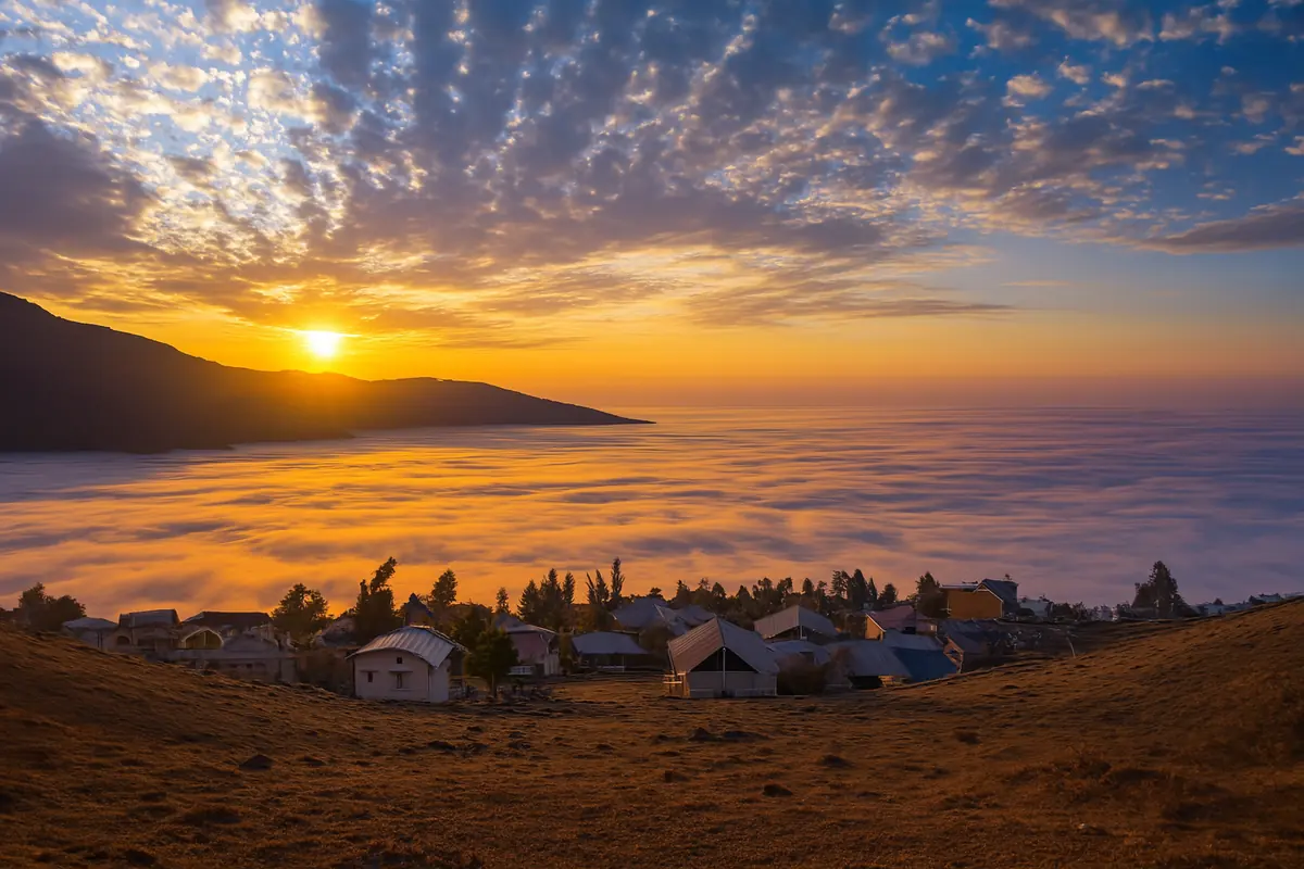 فیلبند مازندران یکی از زیباترین روستاهای ییلاقی ایران است که در ارتفاعات قرار دارد و در پاییز مناظری رویایی خلق میکند. ابرها گویی زیر پای شما گسترده شدهاند و جنگلها و کوههای اطراف، محیطی آرام و دلنشین برای پیادهروی و طبیعتگردی فراهم میآورند. مسیر دسترسی به فیلبند پرپیچوخم است و عبور از جادههای شمالی و جنگلهای سرسبز تجربهای متفاوت از سفر را رقم میزند. بهترین زمان بازدید از این منطقه نیمه دوم سال و مخصوصاً پاییز است، زمانی که هوا خنک و مهآلود است و فرصت مناسبی برای کمپینگ و عکاسی فراهم میشود. در کنار مناظر طبیعی، چشمهها و خانههای بومی، تجربهای اصیل از زندگی محلی و فرهنگ منطقه ارائه میدهند.