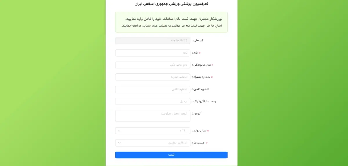 3. تکمیل مشخصات فردی: نام، نام خانوادگی، تاریخ تولد، آدرس و سایر اطلاعات شخصی را ثبت کنید.