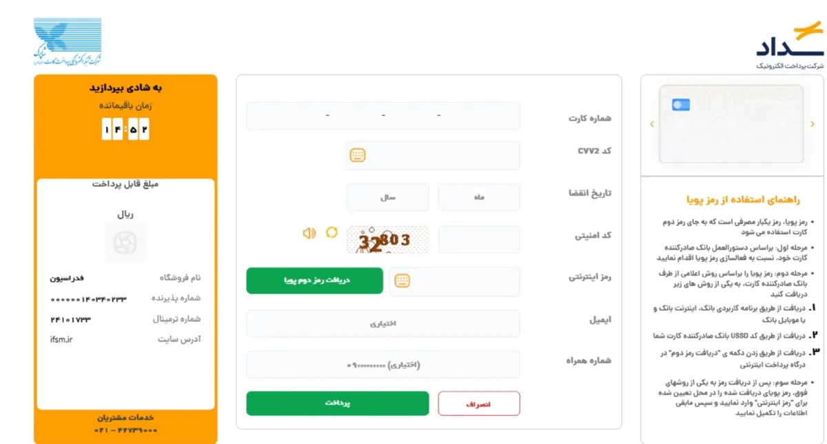 10. دریافت تاییدیه: پس از پرداخت، پیامک تایید برای شما ارسال شده و نسخه چاپی کارت نیز قابل دریافت است.